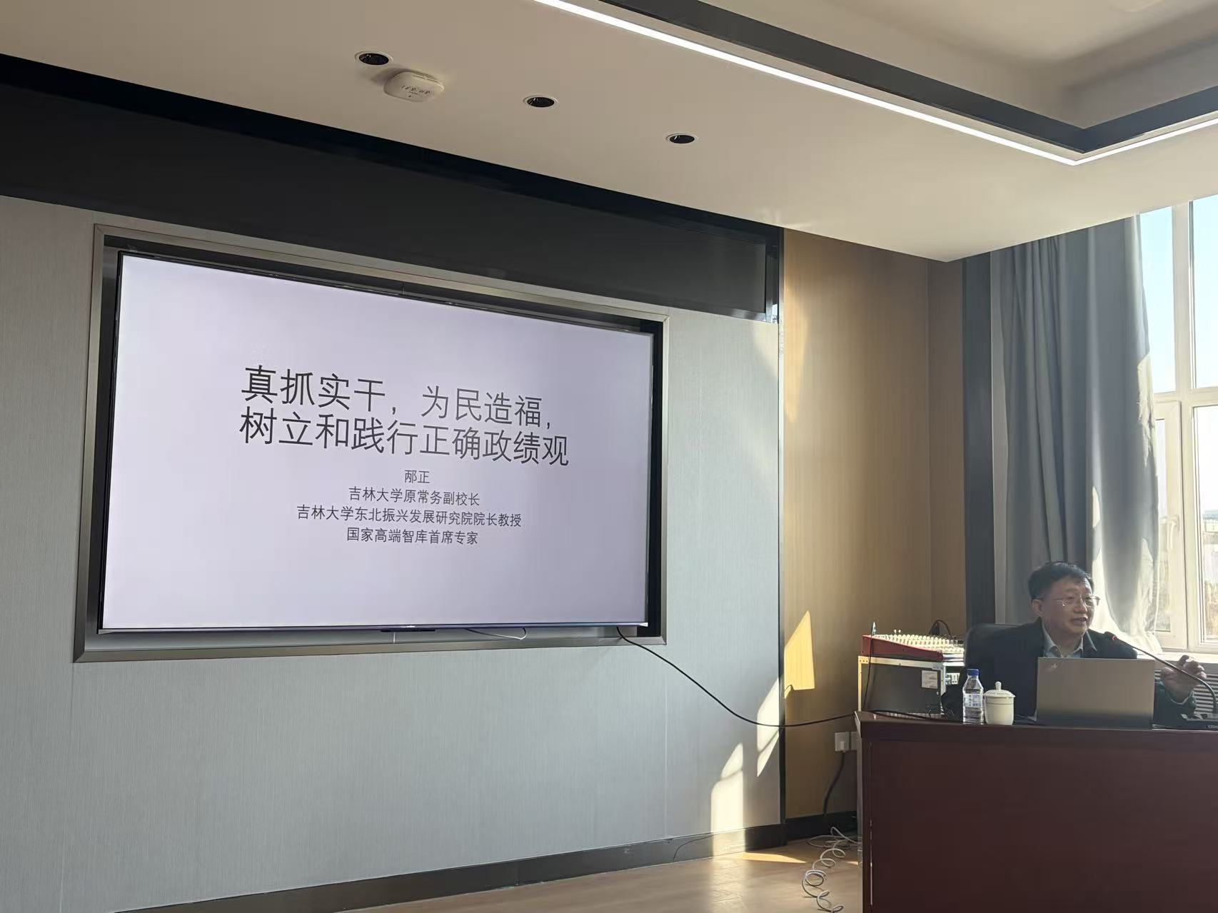 本次辅导报告以“真抓实干,为民造福,树立和践行正确政绩观”为主题,邴正教授紧扣中共中央办公厅印发的树立和践行正确政绩观学习教育相关通知要求,结合“十五五”开局之年的时代背景,从学习教育的开展要求、正确政绩观的内涵要义、践行正确政绩观的核心任务以及具体落实举措四个方面展开系统阐释。报告中,邴正教授援引习近平总书记关于树立和践行正确政绩观的重要论述,清晰界定了正确政绩观“为人民造福、靠实干创造、经实践人民历史检验”的本质特征,深刻剖析了错误政绩观的具体表现与现实危害,重点围绕锤炼党性、人民至上、实事求是、着眼长远、真抓实干等关键维度,阐释了树立和践行正确政绩观的核心要求,并从筑牢思想根基、锚定根本立场、把握精神实质、夯实制度保障、纠治错误倾向等方面,给出了具体实践路径。整场报告主题鲜明、内涵深刻、逻辑严密,既有理论高度的系统解读,又有实践层面的精准指引,让参会人员对树立和践行正确政绩观的重要性、必要性和实践要求有了更为透彻的理解和把握。